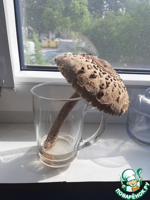 Пока гриб молодой, у него шляпка как яйцо. Если нет возможности оставить его подрасти, можно поставить в стакан с водой и он распустится, как цветок.