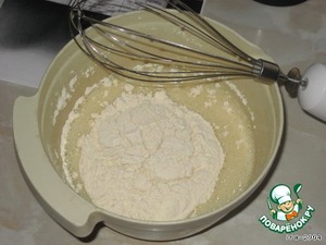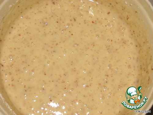 Добавляем орехи и по очереди муку. Все хорошо взбиваем.