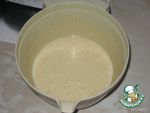 Значит так, яйца взбиваем с сахаром в крутую пену. Добавляем сметану, хорошо мешаем и после соду. -