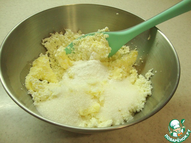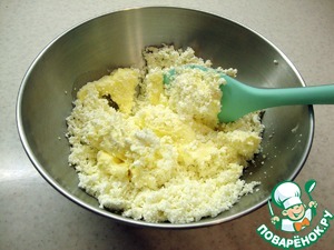 Творог растереть с маслом комнатной температуры до однородного состояния