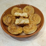 Свернуть рулетом и нарезать на кусочки удобного размера. Я нарезала шириной 2-3 см.