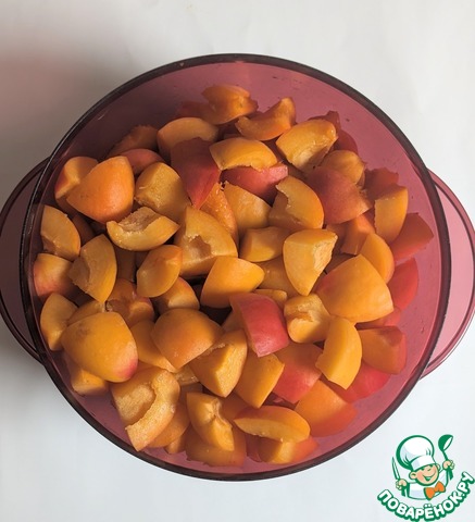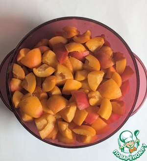 Фрукты моем, удаляем косточки, режем произвольно. Я нарезала на 8 частей.
