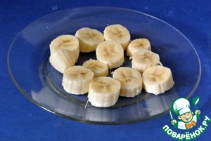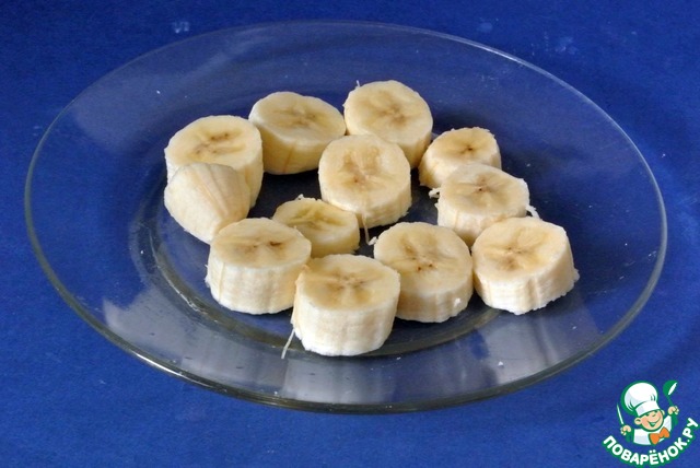 Банан нарезать, смочить соком лимона, чтобы не потемнел. Надо нарезать помельче, я это сделала уже перед добавлением в творожную массу.