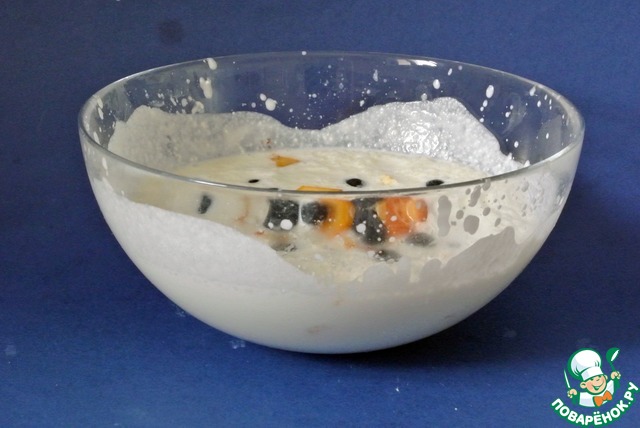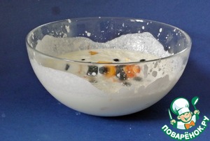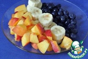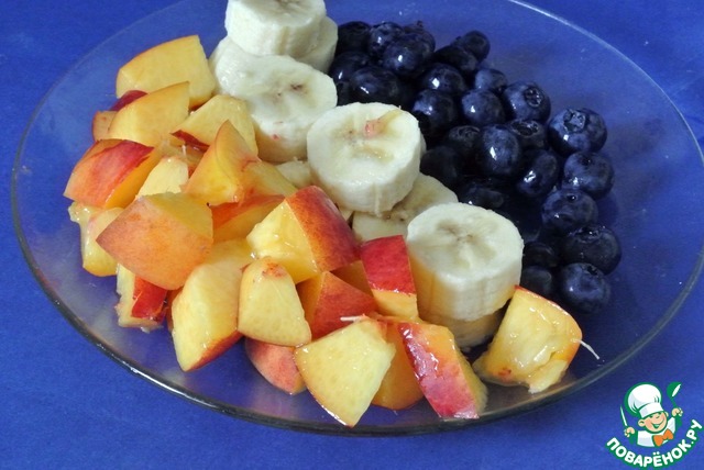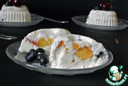 Лёгкий и нежный десерт с фруктами. Получился очень симпатичный как по вкусу, так и по внешнему виду. В десерте нектарин, банан, голубика, черешня. Спасибо Татьяне Неверовой за рецепт!