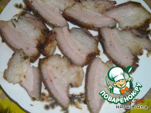 Мой муж очень любит сало... А если оно с прослойкой мяса... ммм... Запекла ему подчеревку. Подчеревка - это мясо брюшины. "Черево" - по украински "брюхо". Это сало с мясом вперемешку, слоями где-то по 1-2 см толщиной. Самая вкусная часть у свиньи, по его мнению.