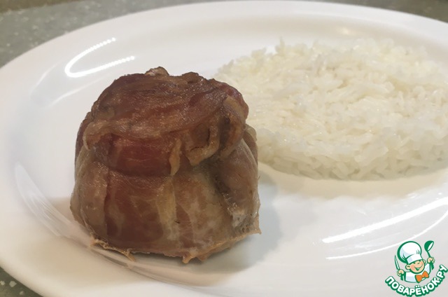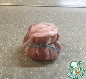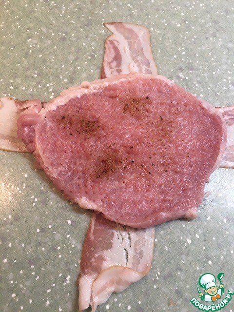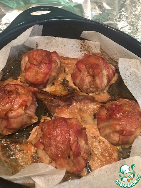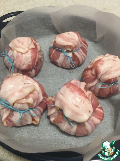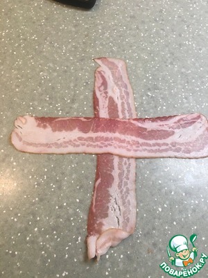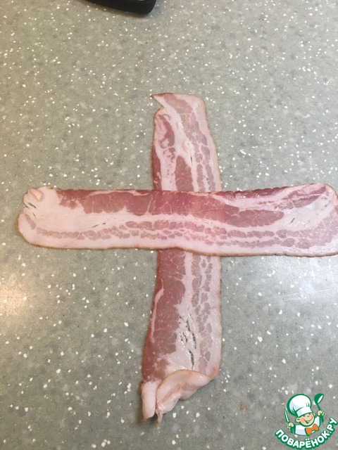 Крест - накрест выложить полоски бекона. У меня сырокопченый.