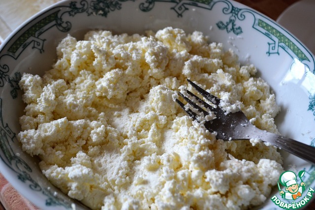 К чесноку добавить творог и 1 ст. л. кокосовой стружки (около 10 г).