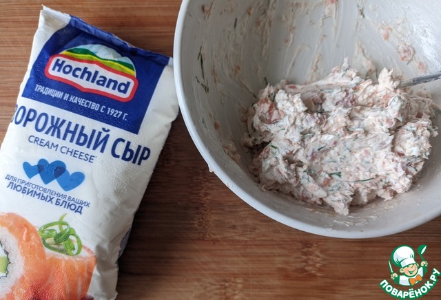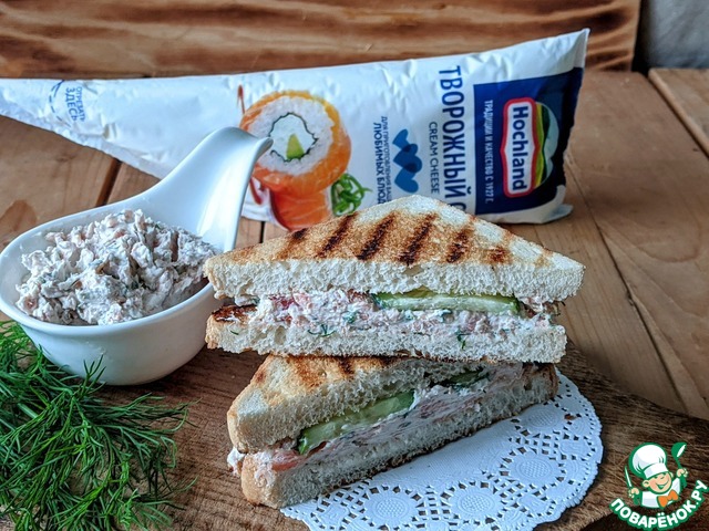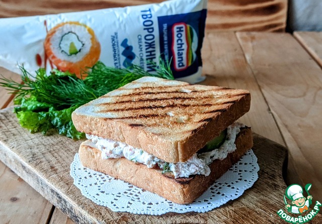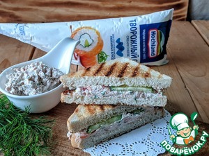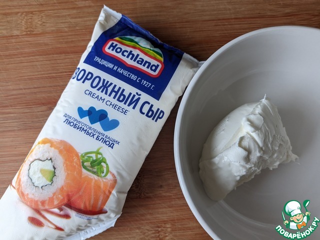 Для приготовления сэндвича берём творожный сыр. У меня - ТМ "Хохланд".