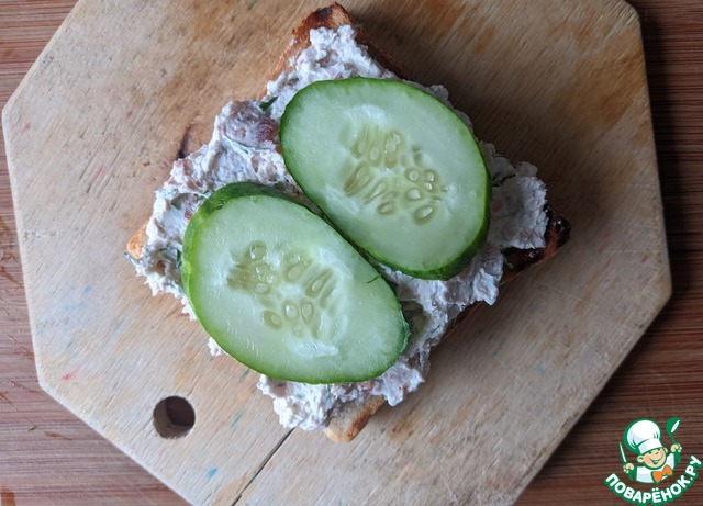 Накрываем сверху вторым тостом. Слегка прижимаем.