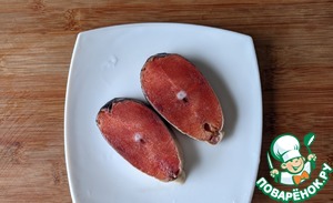 Для приготовления берём любую рыбу лососевых пород. У меня - сима. Рыбу чистим, режем. Готовим любым удобным способом. Я сварила в течении 15 минут.