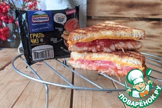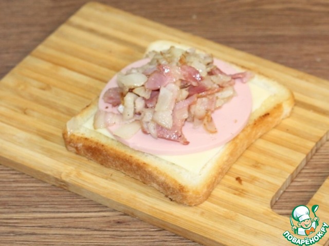Простая, сытная и очень вкусная еда - горячие бутерброды с начинкой из колбасы, плавленного сыра Hochland и грудинки. Отличный завтрак или перекус из вполне доступных продуктов!