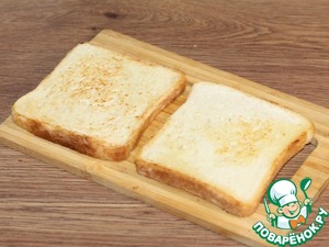 4. Хлеб смазываем сливочным маслом и обжариваем на разогретой сковороде.