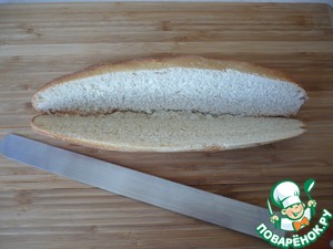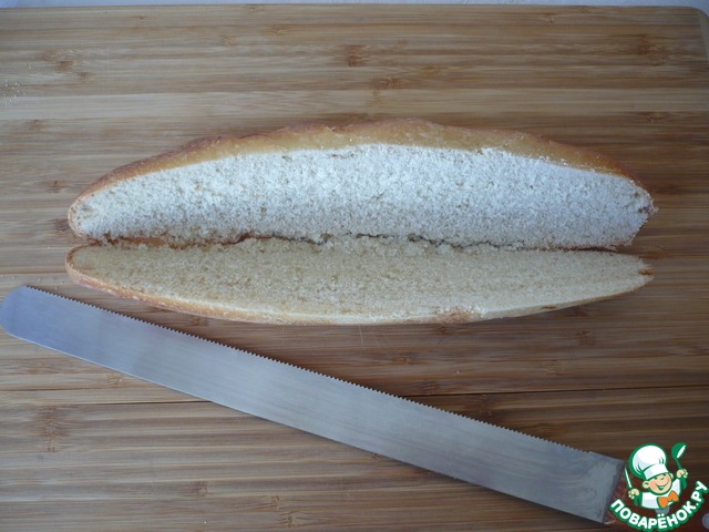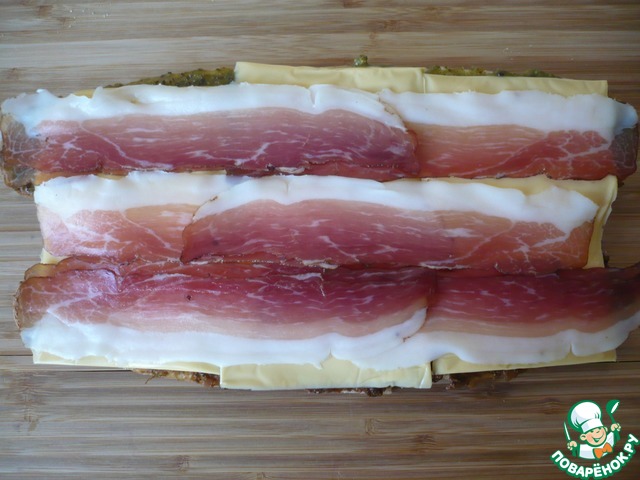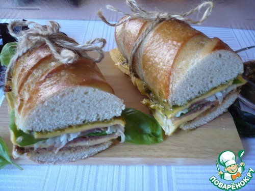 Как только сэндвич готов, я нарезаю его ломтиками размером примерно 1,5 - 2 см и подаю к столу, а можно просто разрезать его на две половинки.