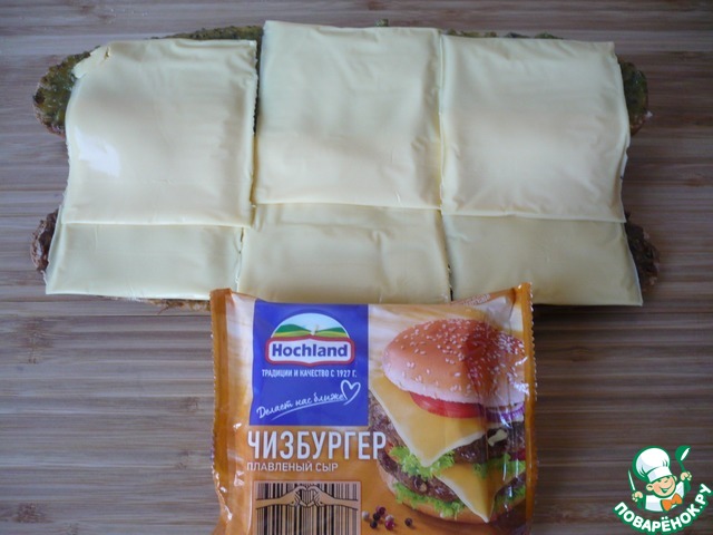 Сверху положите ломтики плавленого сыра "Чизбургер" ТМ "Хохланд".