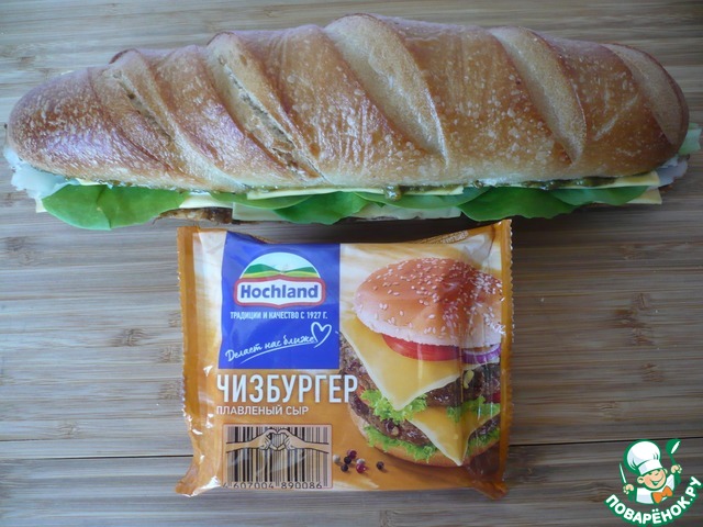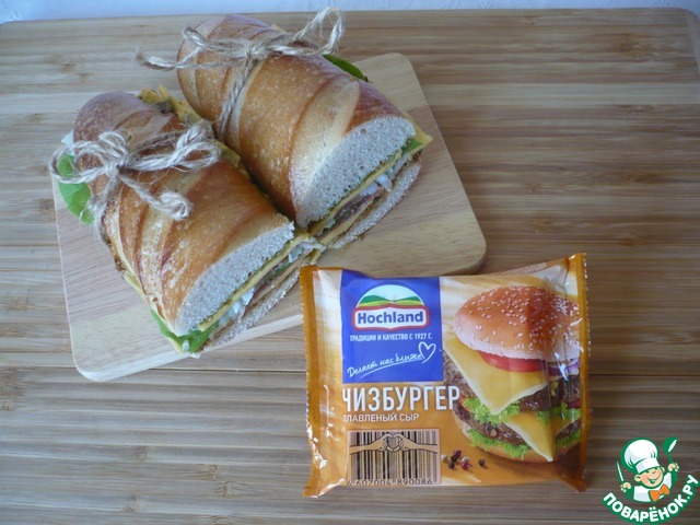 Для приготовления домашнего сэндвича, я взяла плавленый сыр "Чизбургер" ТМ "Хохланд".