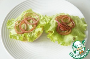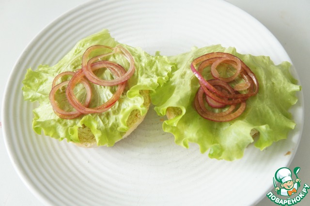 Дальше лист салата и отжатый от уксуса лук.
