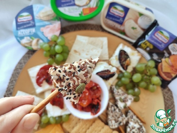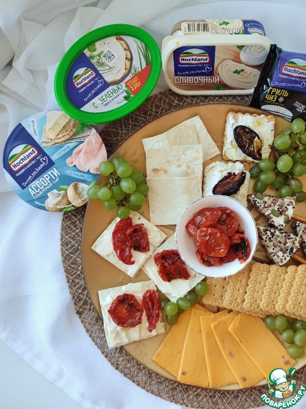 Наполнение тарелки может быть любым, по вашему вкусу и желанию, тем более у "Hochland" огромный ассортимент.