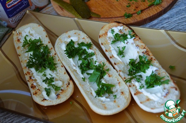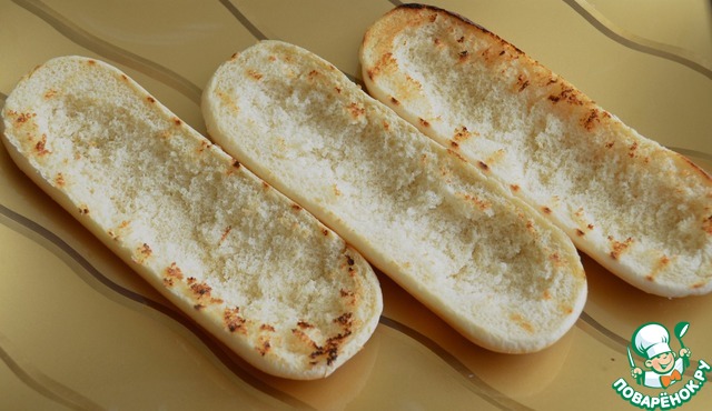 Булки разрезать вдоль, из них удалить часть мякоти.