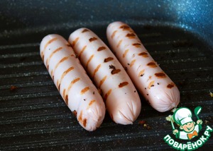 Так же обжарить сосиски.
