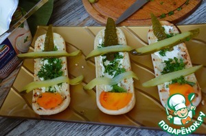 В каждую половинку положить по 1 ч. л. сыра и зелень.