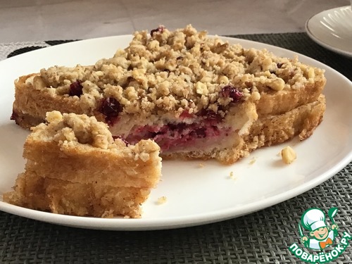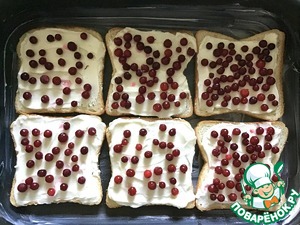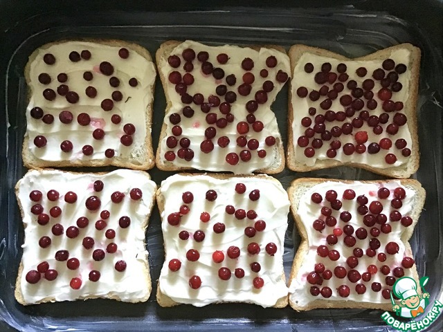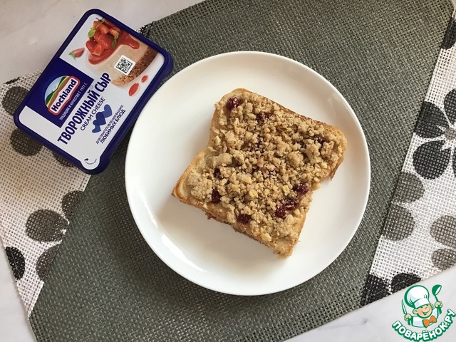 Традиционно французские тосты готовят на сковороде, а в этом рецепте тосты не жарятся, а запекаются. Готовятся не быстро, но не сложно. Плюс этого метода для меня заключается в том, что проделав все необходимые подготовительные процессы с вечера, утром останется только включить духовку и позволить завтраку готовится самостоятельно. Получается очень сытно и вкусно: два кусочка тостового хлеба приправлены корицей и мускатным орехом, соединены сырно-творожной сладкой начинкой с добавлением кислых ягод и покрыты ореховым штрейзелем.