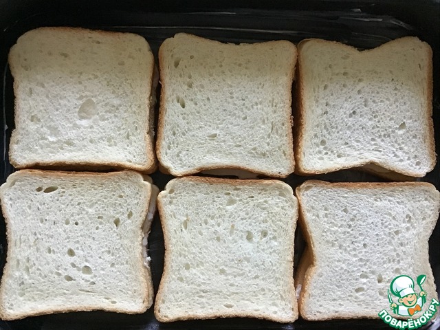 Сверху разложите оставшиеся ломтики хлеба и слегка прижмите.