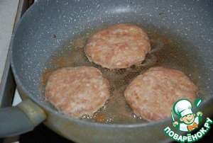 Масло при выкладке котлеты обязательно должно зашкварчеть. Формируем котлетку, обмакиваем ее со всех сторон в белке. Этот нехитрый фокус поможет нам сохранить весь мясной сок внутри котлеты. Жарим с 2 сторон без крышки до аппетитных поджарок (минуты 2-3). Ориентируйтесь по вашей плите и сковороде.