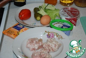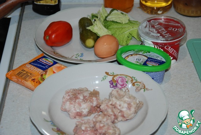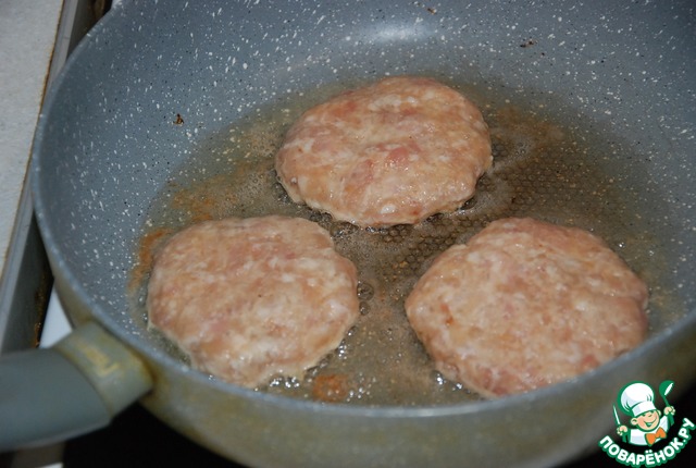 - Фарш мясной (Количество зависит от размера булочек. Диаметр котлеты должен соответствовать диаметру булочки.) — 200 г