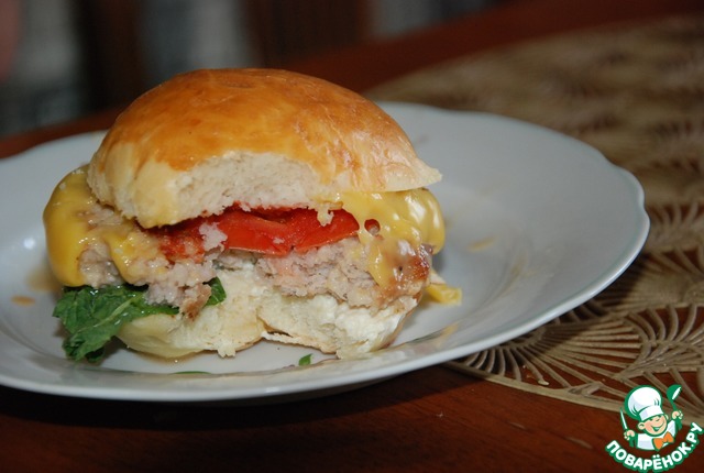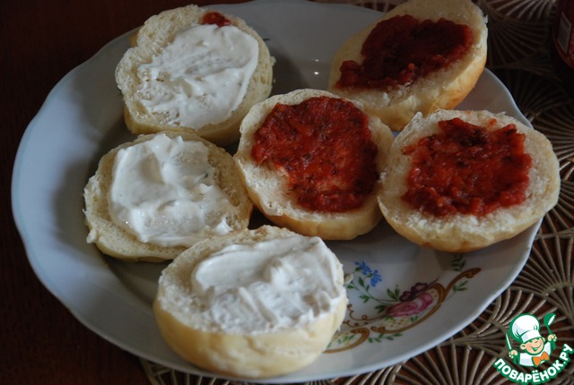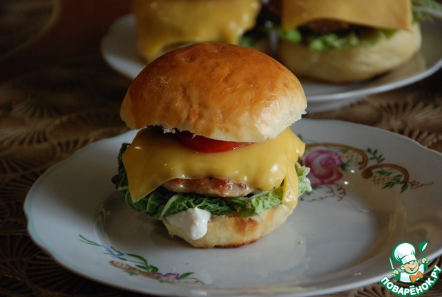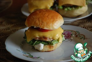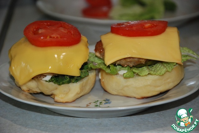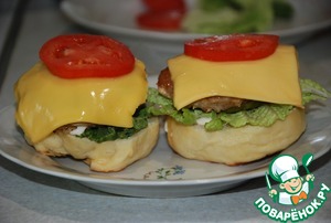 На них выкладываете котлетку, сыр и помидорный слайс.
