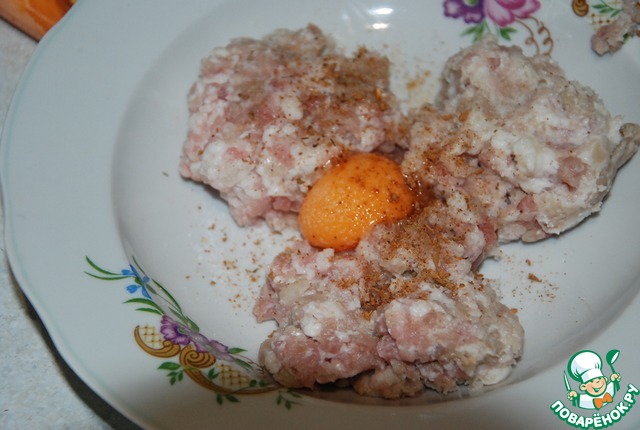 Разделите яйцо на желток и белок. Желток, соль, приправу добавьте к фаршу. Белок вылейте в тарелку. Он нам пригодится. Фарш нужно хорошо вымесить, разделить на равные доли по количеству котлет. Поставить сковороду, смазанную маслом на достаточно хороший огонь. У меня это 5 из 6. Каждую будущую котлетку нужно несколько раз перекинуть из руки в руку с достаточным усилием.