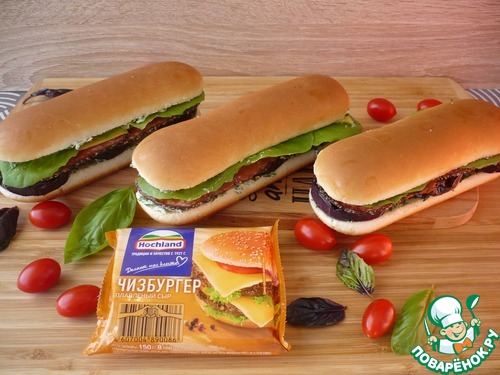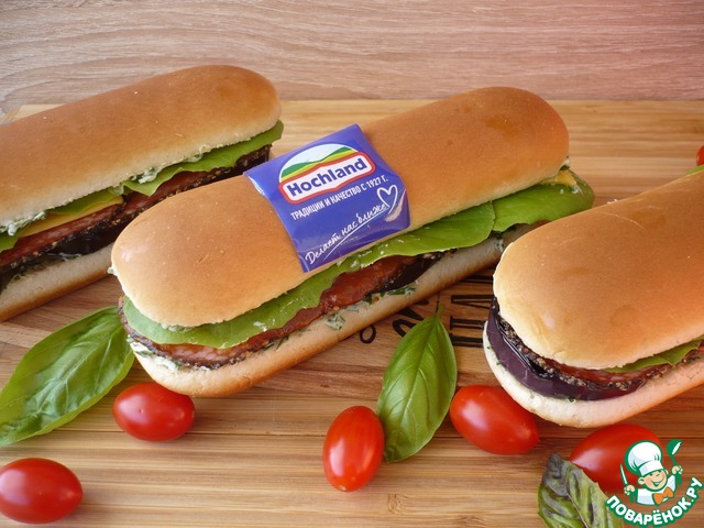 Сэндвичи с плавленым сыром и баклажанами - очень сытно, вкусно и сочно, а еще - это и отличное угощение для гостей и для семьи. Плавленый сыр "Чизбургер" ТМ "Хохланд" в сочетании с обжаренными баклажанами создают превосходный вкус. Попробуйте приготовить, не пожалеете!