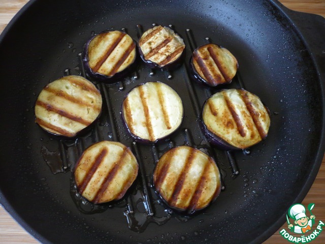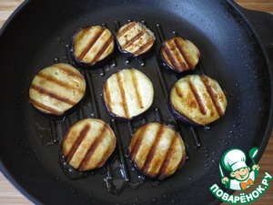 Затем баклажаны обжарьте с двух сторон на сковароде-гриль.
