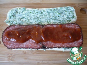 Сверху намажьте томатным соусом.