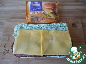 Теперь положите ломтики плавленого сыра "Чизбургер" ТМ "Хохланд".