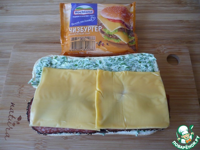 Для приготовления сэндвичей я использовала плавленый сыр "Чизбургер" ТМ "Хохланд".