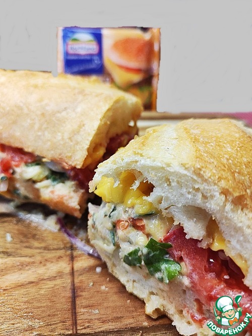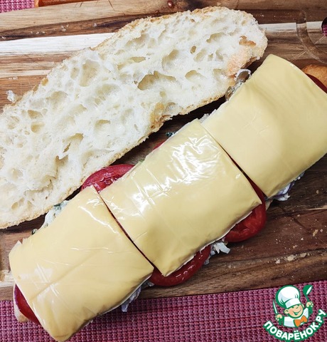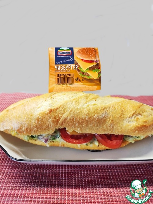 Всю эту красоту накроем пластинками сыра Hochland чизбургер. Он идеален для сэндвичей и бургеров.