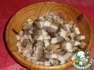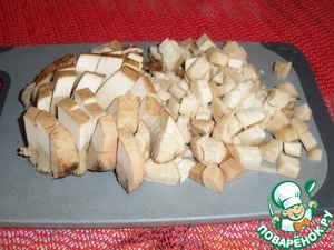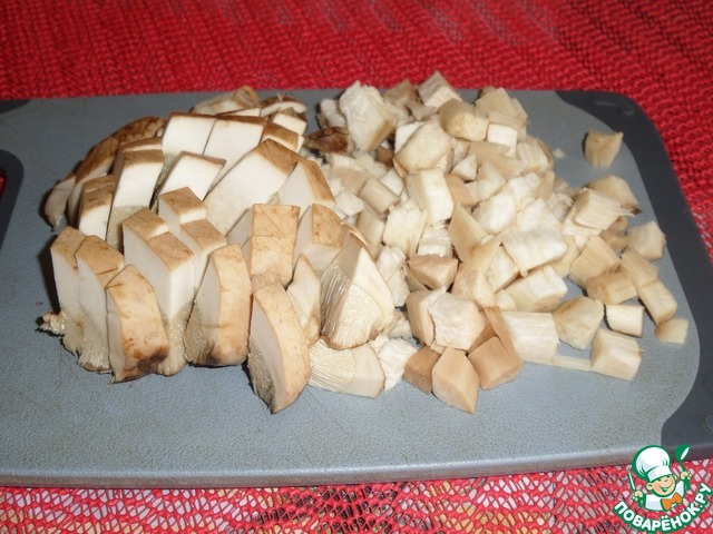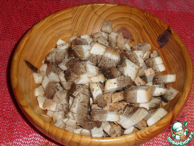 Грибы очищаем и промываем водой. Обсушиваем салфеткой и нарезаем. Для приготовления я использую свежесобранные подберезовики.