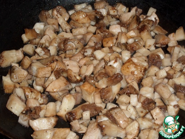 Обжариваем грибы в течении 10 -12 минут на среднем огне, периодически помешивая их. Затем убираем сковороду с огня.