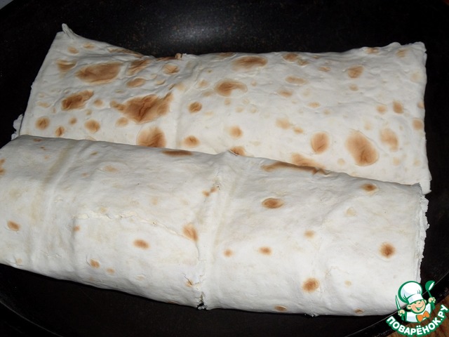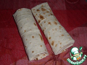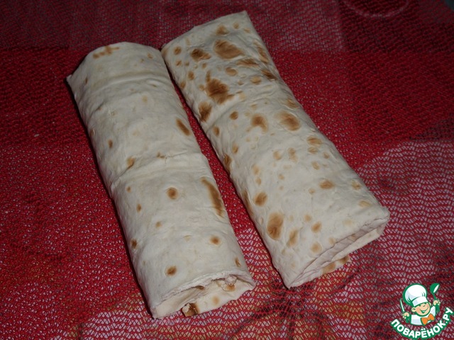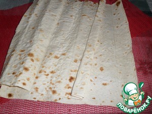 Подготовим лаваш, если необходимо разрезаем его на части. (У меня лаваш-ролл длиной 1 м, поэтому я разрезала его на 2 части.