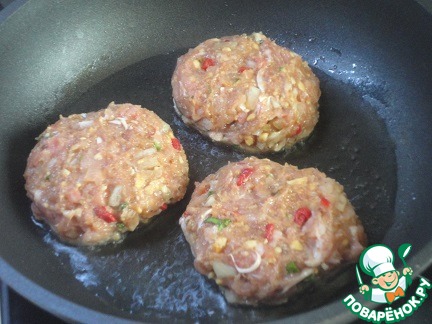 Сформируйте котлеты и обжаривайте на среднем огне с двух сторон 14-16 минут.
