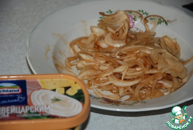 • В грибочки мы добавим новинку от Hochland плавленый сыр со швейцарским сыром. Очень вкусный сыр и отлично украсит наши жареные грибочки.