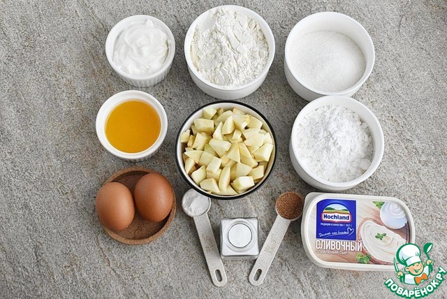 Ингредиенты для «Яблочный кекс с сырной глазурью»: