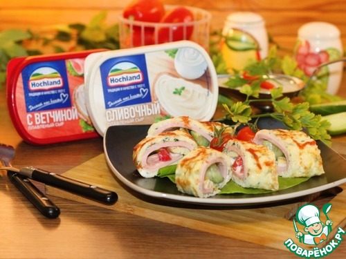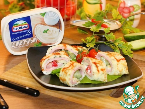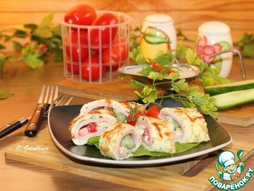 Рецепт «Яичные роллы с помидором и огурцом»:
