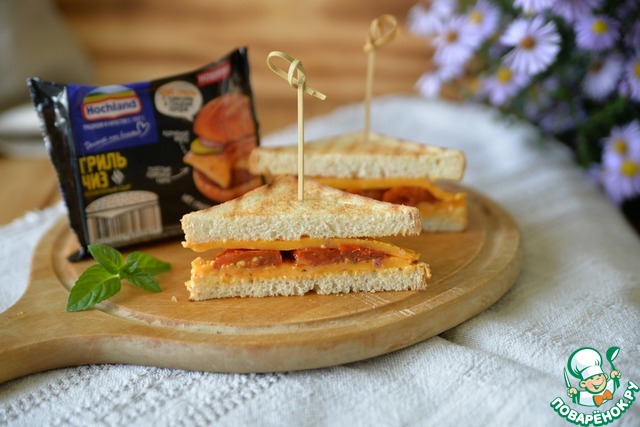 Рецепт «Сэндвич с сыром и запечёнными томатами»: