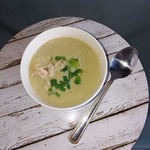 Слить лишний бульон, что бы суп не был слишком жидким (для украшения можно вынуть небольшое соцветие брокколи)