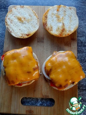 Поверх расположить котлету с сыром.