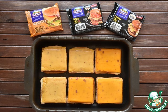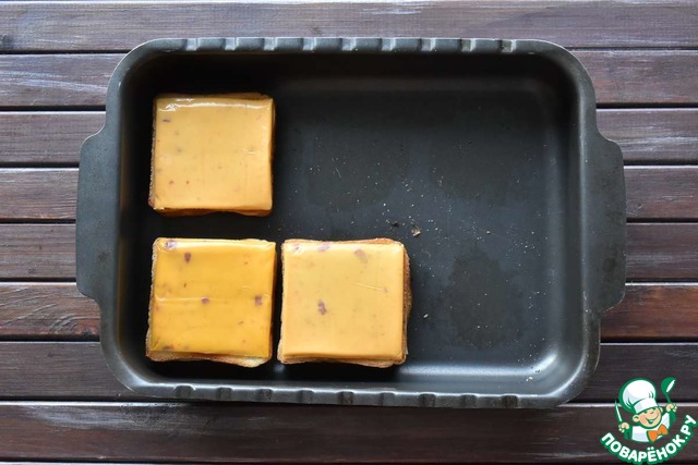 Тосты с сыром чизбургер накрыть тостами с сыром чили чиз.