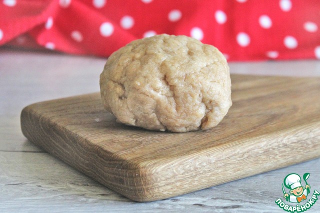 Приготовить тесто. Для этого в чашку просеять 2 вида муки, влить растительное масло. Руками перетереть муку с растительным маслом в «мокрую» крошку, затем добавить молоко и замесить эластичное, не липнущее к рукам тесто. Тесту придать форму шара, завернуть в пищевую пленку и охладить в холодильнике около 30 минут.