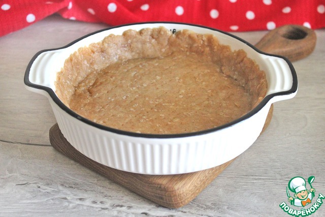 Охлажденное тесто раскатать в круглый пласт толщиной около 5 мм и уложить в форму для выпечки, формируя бортики. Вилкой наколоть дно и испечь при 180 градусах около 10 минут.