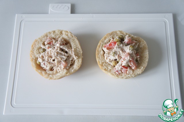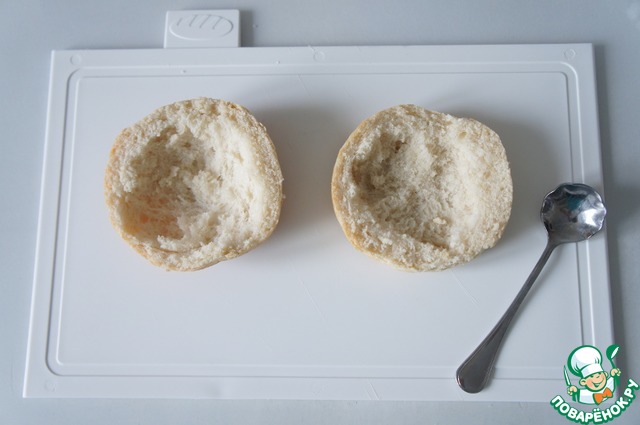 Вынимаем мякиш из булочек. Откладываем в сторону, его можно пустить в котлеты или на сухари.